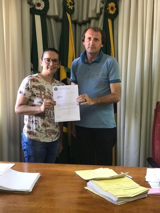 A PRESIDENTE DO PODER LEGISLATIVO DE IBARAMA, SRA. SÔNIA DE BONA, ESTEVE HOJE, 27 DE DEZEMBRO, NO GABINETE DO PREFEITO MUNICIPAL, PARA ENTREGA DE UM OFÍCIO QUE CONFIRMA A DEVOLUÇÃO DE RECURSOS FINANCEIROS DA CÂMARA PARA A PREFEITURA.