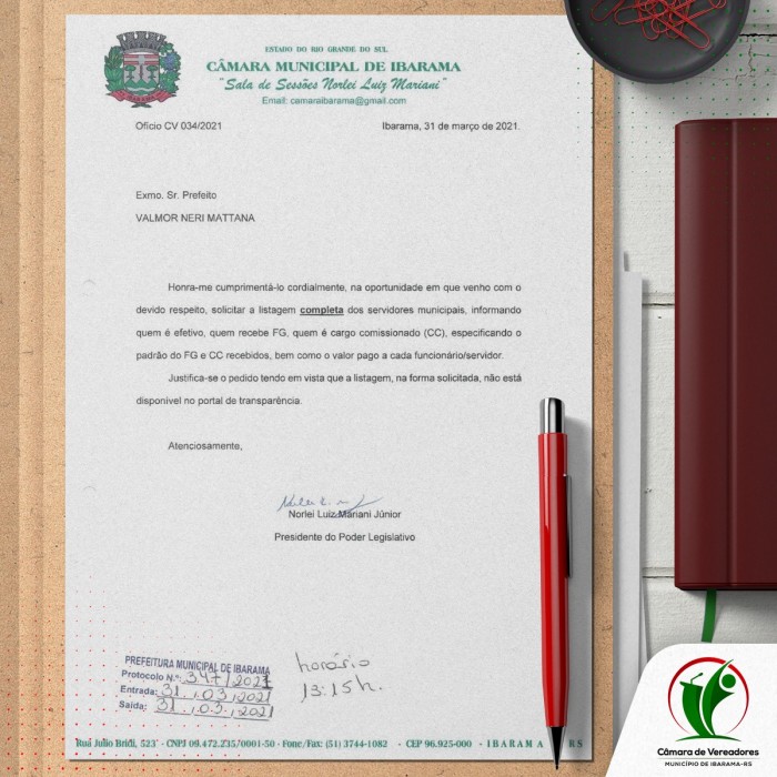 Ofício CV 034/2021 Ibarama, 31 de março de 2021.