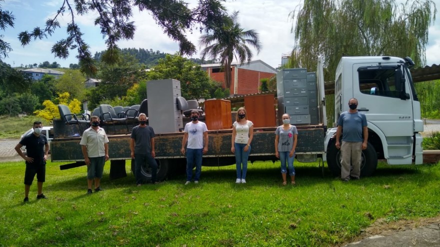 O presidente acompanhado do Vereador Tainã Forgerini esteve no depósito do Banrisul em Canoas, onde fizeram a retirada dos móveis, dentre os quais, cadeiras, mesas, armários, arquivos.